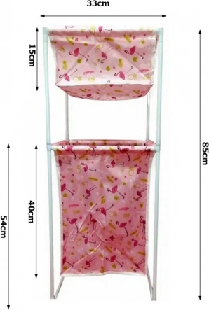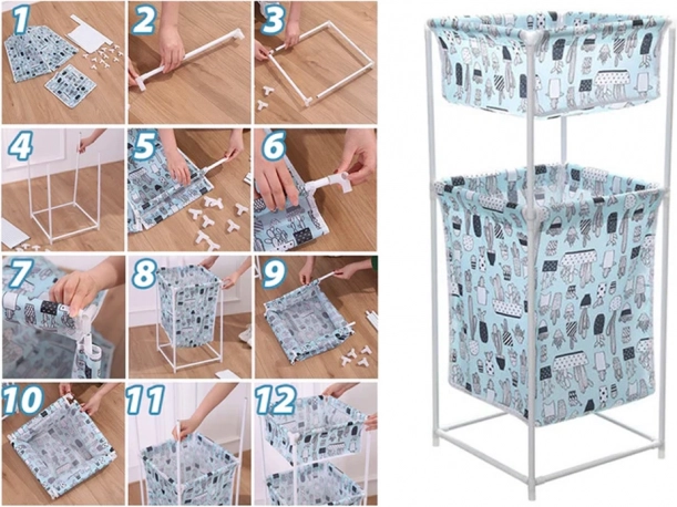 Coșul de rufe este proiectat pentru funcționalitate maximă și practicitate. Datorită construcției sale universale, poate fi utilizat în două variante diferite: cu poliță superioară sau ca un coș mare. Este realizat din plastic de calitate și țesătură rezistentă la apă, asigurând o durată lungă de viață și întreținere ușoară.