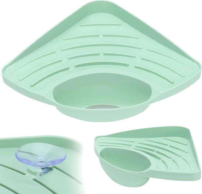 Elegant uscător de colț pentru bucătărie, care vă ajută să mențineți ordinea în chiuvete și bureți. Datorită designului eficient cu găuri, apa se va scurge liber în chiuvetă.