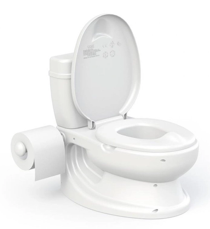 Oliță realistă în formă de toaletă, care îi ajută pe copii să treacă de la scutec la toaletă într-un mod distractiv și motivant. Oferă sunet de spălare, suport pentru hârtie igienică, bol detașabil pentru curățare ușoară și bază antiderapantă pentru utilizare în siguranță.