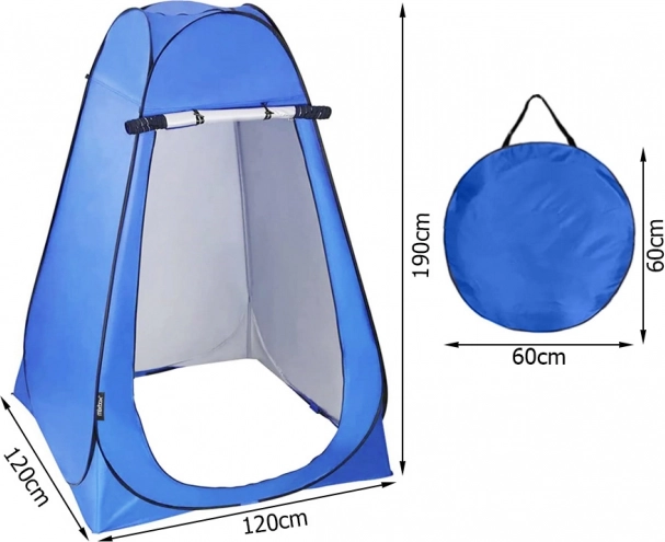 Cort de plajă autopliabil și vestiar cu duș și WC, albastru
