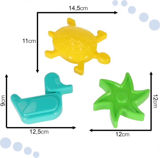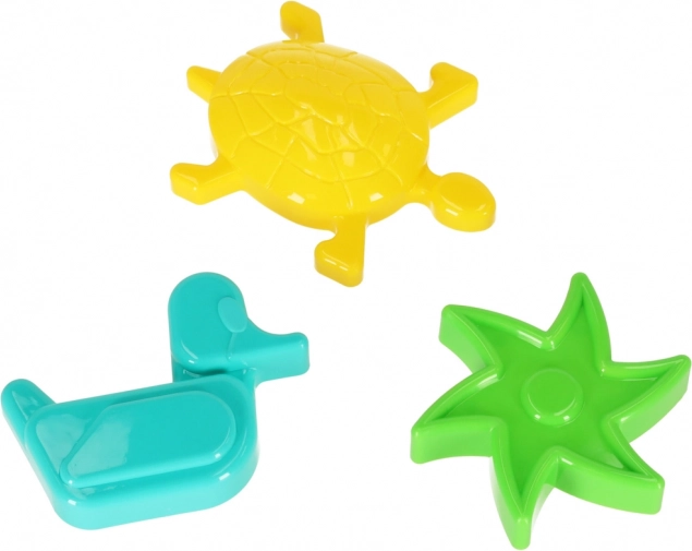 Bucurați-vă de joaca creativă în nisip și în apă. Setul oferă o barcă multifuncțională, pe care o demontați ușor în trei părți și o folosiți ca formă mare sau o lăsați să plutească. Trei forme intens colorate – stea, rață și broască țestoasă – îi ajută pe copii să creeze forme frumoase și să-și dezvolte imaginația și motricitatea fină.