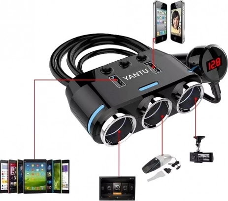 Extindeți alimentarea în mașina dvs. și încărcați comod telefoane, tablete, camera auto sau navigația simultan. Împărțitorul oferă 3 prize 12–24 V și 2 ieșiri USB 5 V (1 A și 2,1 A), astfel încât poate gestiona mai multe dispozitive deodată fără reconectări complicate.