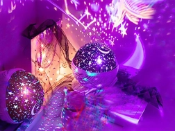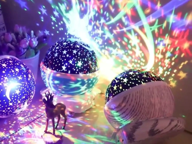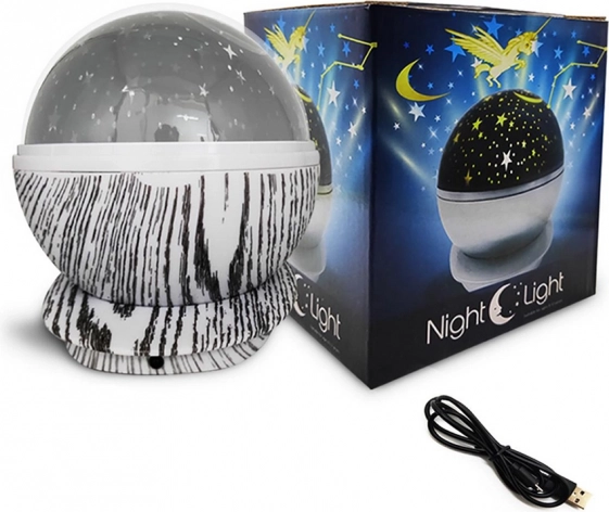 Acest proiector stilat transformă tavanul și pereții într-un cer înstelat magic cu lună. Datorită rotirii la 360° creează un efect dinamic, liniștitor, care ajută atât copiii, cât și adulții să adoarmă mai ușor și să se relaxeze. Este o decorațiune grozavă și totodată o veioză de noapte practică.