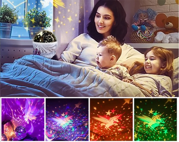- Veioză de noapte rotativă / proiector cu stele și lună