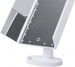Eleganta oglindă cosmetică triplă cu iluminare LED oferă o imagine clară și uniformă, fără umbre. Panoul principal încadrat de 22 LED-uri facilitează machiajul precis, aranjarea sprâncenelor și bărbieritul. Comutatorul tactil frontal permite pornirea rapidă și controlul facil.