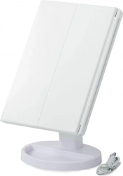 Aripile laterale cu mărire standard, 2x și 3x evidențiază fiecare detaliu – ideale pentru tuș, gene și lucrul pe zone mici. Baza stabilă și construcția pliabilă economisesc spațiu pe măsuța de toaletă și ușurează transportul. Alimentare practică prin USB (cablu inclus) sau baterii 4× AAA.