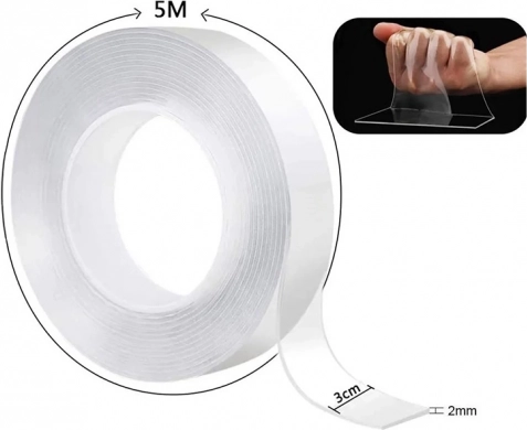 Banda adezivă transparentă dublu față este foarte ușor de aplicat. Este suficient să curățați ușor suprafața pe care va fi aplicată și să presați banda. Se poate dezlipi ușor și, după spălare, poate fi reutilizată fără a lăsa reziduuri. O puteți folosi pentru agățarea tablourilor, a diferitelor ustensile de bucătărie sau pentru fixarea cablurilor, șinelor sau covoarelor.