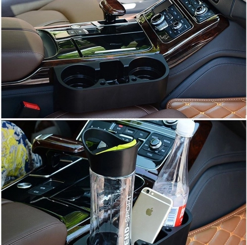 Orificiile largi mențin stabil paharele, dozele și sticlele, astfel încât la frânare sau în curbe nimic nu se varsă.