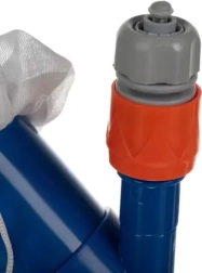 Aspiratorul se conectează simplu la furtunul de grădină printr-o cuplă rapidă. Presiunea apei aspiră impuritățile în săculeț, astfel că curățarea este rapidă și fără întreținere complicată.