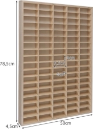 Construcția bine gândită permite îndepărtarea și rearanjarea despărțitoarelor, astfel încât să creezi cu ușurință dimensiunile necesare pentru modele de mărimi diferite. Raftul este destinat agățării pe perete (setul de montaj și 2 agățători sunt incluse), dar poate fi așezat și pe o comodă sau masă.